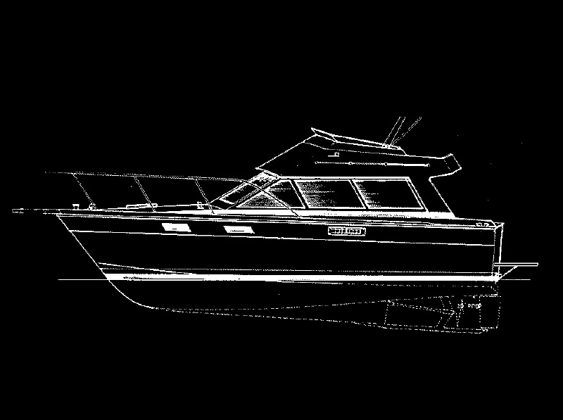 The DEFENDER is a smaller version of our popular Liberty 10m. The craft has been designed to take a flying bridge. The Defender has an extremely flat propeller shaft angle of only 8° with the engine mounted amidships and covered by a small surround on top of which is the helm seat and instrument console. The Defender is constructed over conventional frames at approximately 941 mm centres and the frames are overlaid with laminated bottom stringers and one piece side stringers. The chines and gunwales are also laminated. The bottom is 2 layers of 9mm ply, and the topsides 2 layers of 6mm ply.