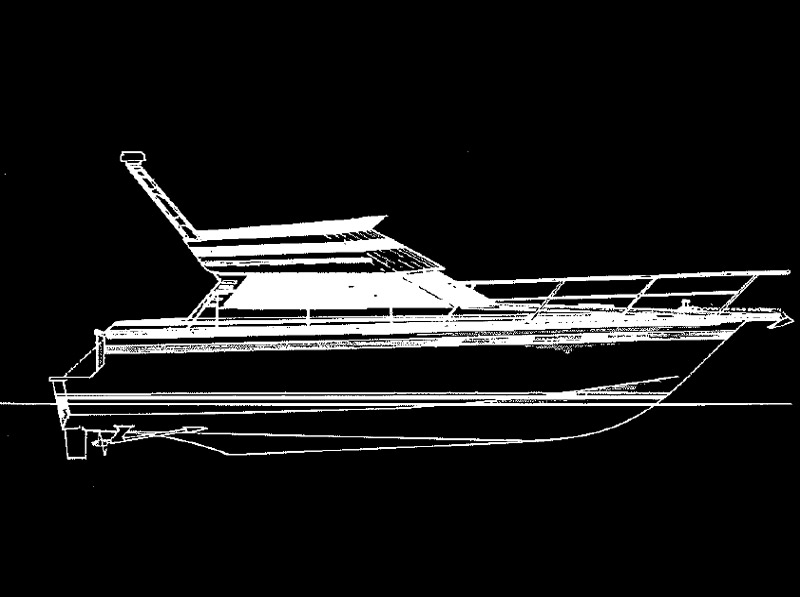The ECLIPSE 14.6m is a high performance hull with a medium vee 15° bottom basically parallel over the last third. These hulls are capable of being powered by conventional inboard diesels, surface drive, 110 or jet and the design has been aimed at the 20 to 30 knots cruise range. Twin 300 h.p. diesels will give an easy 25 knots and a maximum of around 30 knots with conventional drives. Fuel consumption at 25 knots would be approximately 22 imperial g.p.h. and at this speed you could expect just over 1 nautical m.p.g. The construction is double diagonal or plywood over frames, bulkheads and heavy laminated fore and aft stringers in the bottom and one piece stringers in the topsides. This is a well proven construction giving excellent drainage and easily maintained interior which is structurally sound. However, other forms of construction can be used such as Cedar core, end grain balsa or straight GRP.