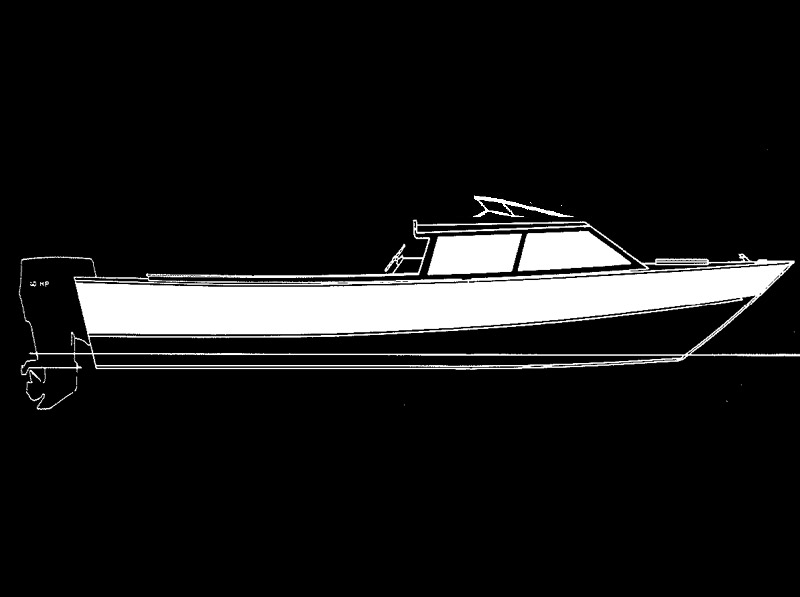 The KEEPER is a 6m dory designed for general purpose use with a small shelter cabin. It would be possible to lay a lylo or squabs on the floor in the cabin for sleeping purposes if desired. This craft is suited to shoal draught operation as well as being an excellent sea boat for rough water use. The craft is easily constructed from cheap Pine construction plywood and Pine or Macrocarpa or similar timber. Where treated plywood is used it is necessary to use resorcinal glue and this gives a good long lasting but cheap craft. The hull form ensures that the craft gives a good ride in rough water conditions with excellent stability at rest for fishing etc. Speeds up to 35 m.p.h. can be expected from twin 40 h.p. outboards with the same performance from a single 80 h.p.