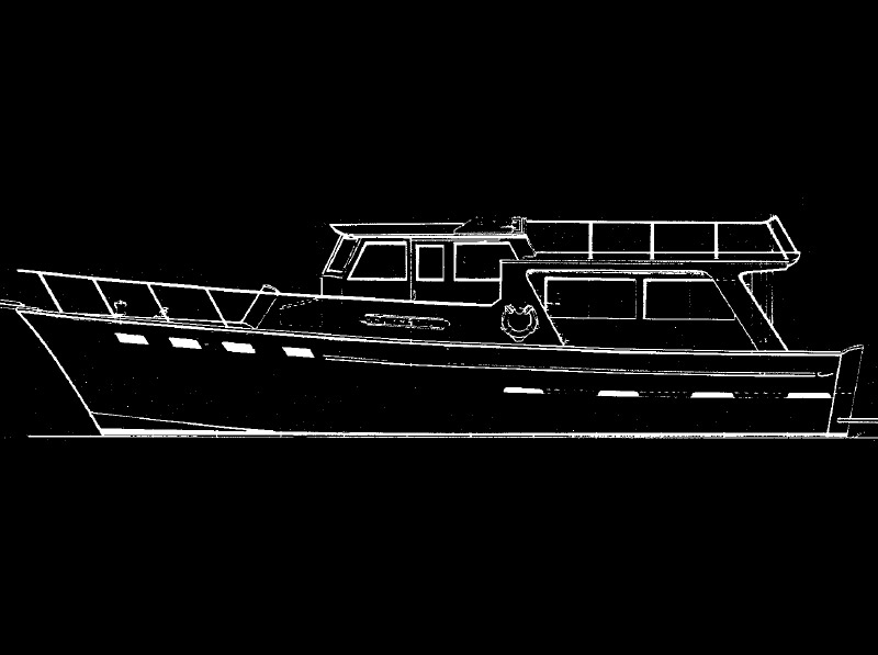 The 40ft WINDWARD has been designed for offshore cruising and this craft has got sufficient buoyancy to carry extremely large fuel loads which makes the possibility of a cruising range of up to 2,000 nautical miles. Twin 100 h.p. Fordsons on 2 to 1 reduction would give a cruising speed of 8 knots at 3 g.p.h. At lower speeds the fuel consumption would be further reduced and the range increased. Twin 100 h.p. diesels would give a top speed of 11 knots with a fuel consumption of 5 g.p.h. Construction is 3/16" steel plate over transverse frames and fore and aft stringers. The hull is ideally suited for amateur construction and is extremely robust with a high forward freeboard so that rough water can easily be handled. The craft features walk round side decks and high bulkwarks for safety with the engine room under the floor of the main cabin for ease of accessibility around the engines. Steel enables large built in tanks to be easily incorporated in the hull construction and 1,000 gallons of fuel could easily be carried in a craft of this size. The layout features a 4 berth forward cabin with owner's cabin immediately after this to starboard and shower and toilet to port. Immediately behind this is a large roomy wheelhouse and behind that the galley, dinette and saloon.