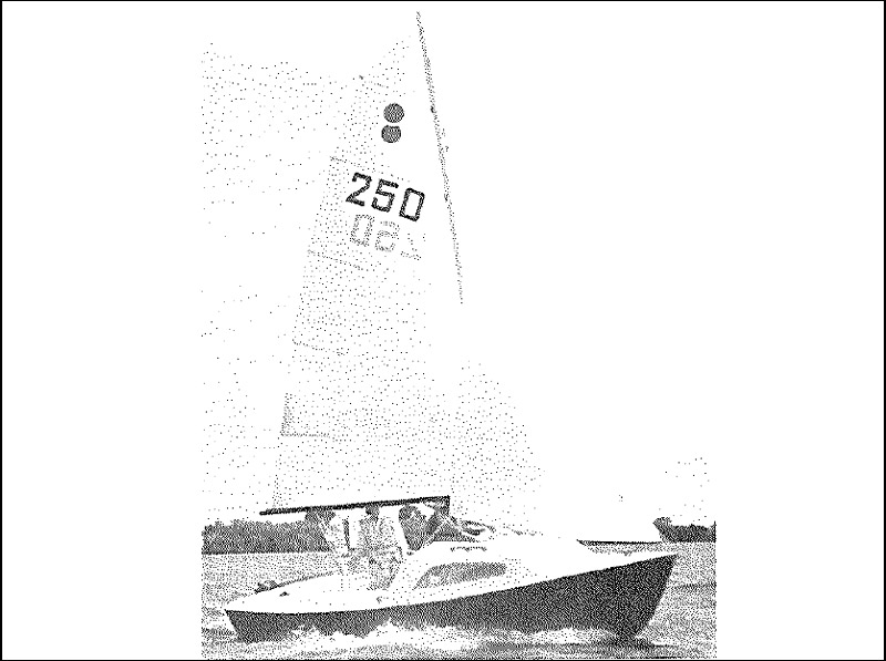 The CHERRY is a light weight trailer yacht designed to be built with the minimum of experience and tools. The construction requires no building jig. The sheet plywood for the hull is simply cut to the patterns supplied and the bottom and sides scarfed together to form full length panels. The plywood panels are then laced together with 36kg monofilament fishing line and all the joins glass taped with two layers of 6oz fibreglass tape and epoxy resin bonded. The c/b is constructed from 9mm steel and is of a pivotting type which can be fully retracted when sailing flat off the wind or adjusted to any angle when reaching or sailing to windward. The Cherry has a fairly fine entry and flattens out to a wide planing section aft and the large cockpit approx 2.44m allows the weight of the crew to be kept amidships when sailing. Because of the light weight the rig has been kept relatively small but the sail area to weight is comparable with most other craft of its type. The sail plan calls for a tapered aluminium mast to get the most out of the small rig.