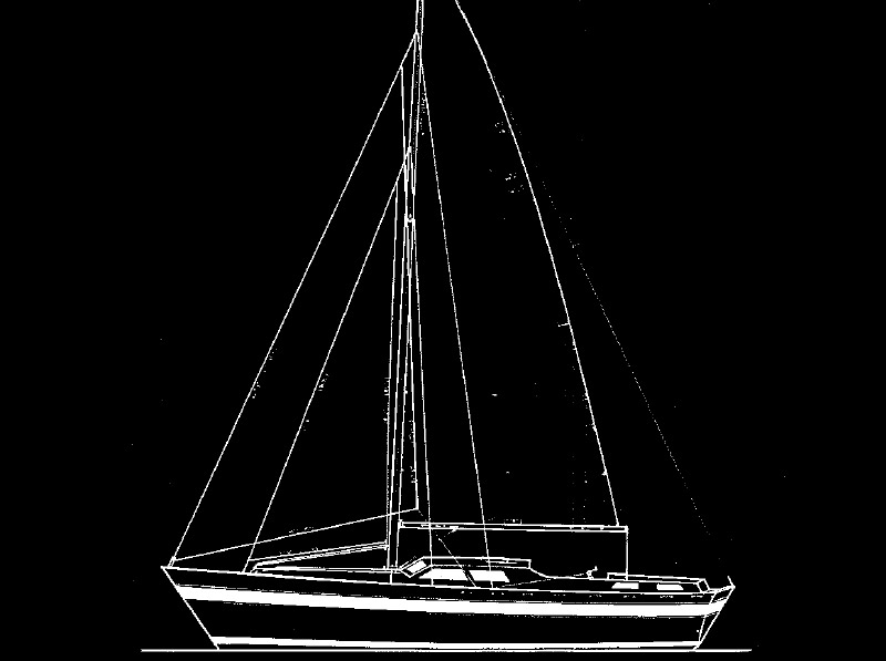 Sail area: Mainsail: 410 sq.ft., Staysail: 149 sq.ft., Jib: 372 sq.ft.