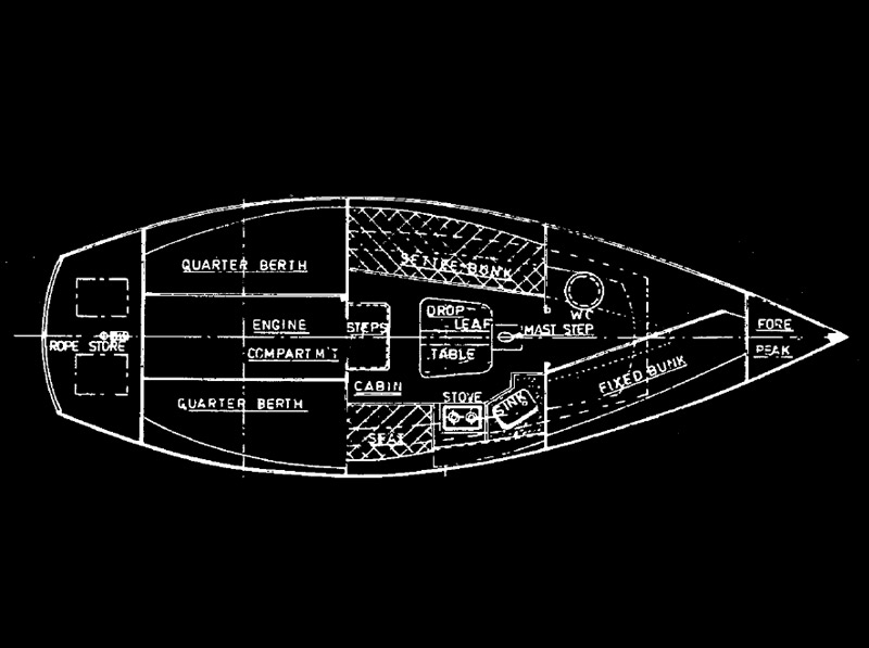 The 24ft PRELUDE has been designed for family cruising as well as offshore and coastal racing. The 4 berth layout gives the maximum amount of liveable room in a craft of this size and combined with a generous headroom of 5'6" assures a comfortable and fast cruiser/racer. The Prelude hull has been designed to give good windward performance with a firm bilge and fine easy entrance as well as a generous ballast ratio to give the craft power to drive through the seas normally encountered in up wind conditions. The under cockpit floor auxiliary engine can be of diesel or petrol as the design has allowed for 400/500lbs. engine weight in this area. This ensures that as an auxiliary there is more than sufficient power to handle adverse conditions. The sail plan reflects the modern trend of a small easily handled mainsail and large overlapping headsails on a robust mast head rig.